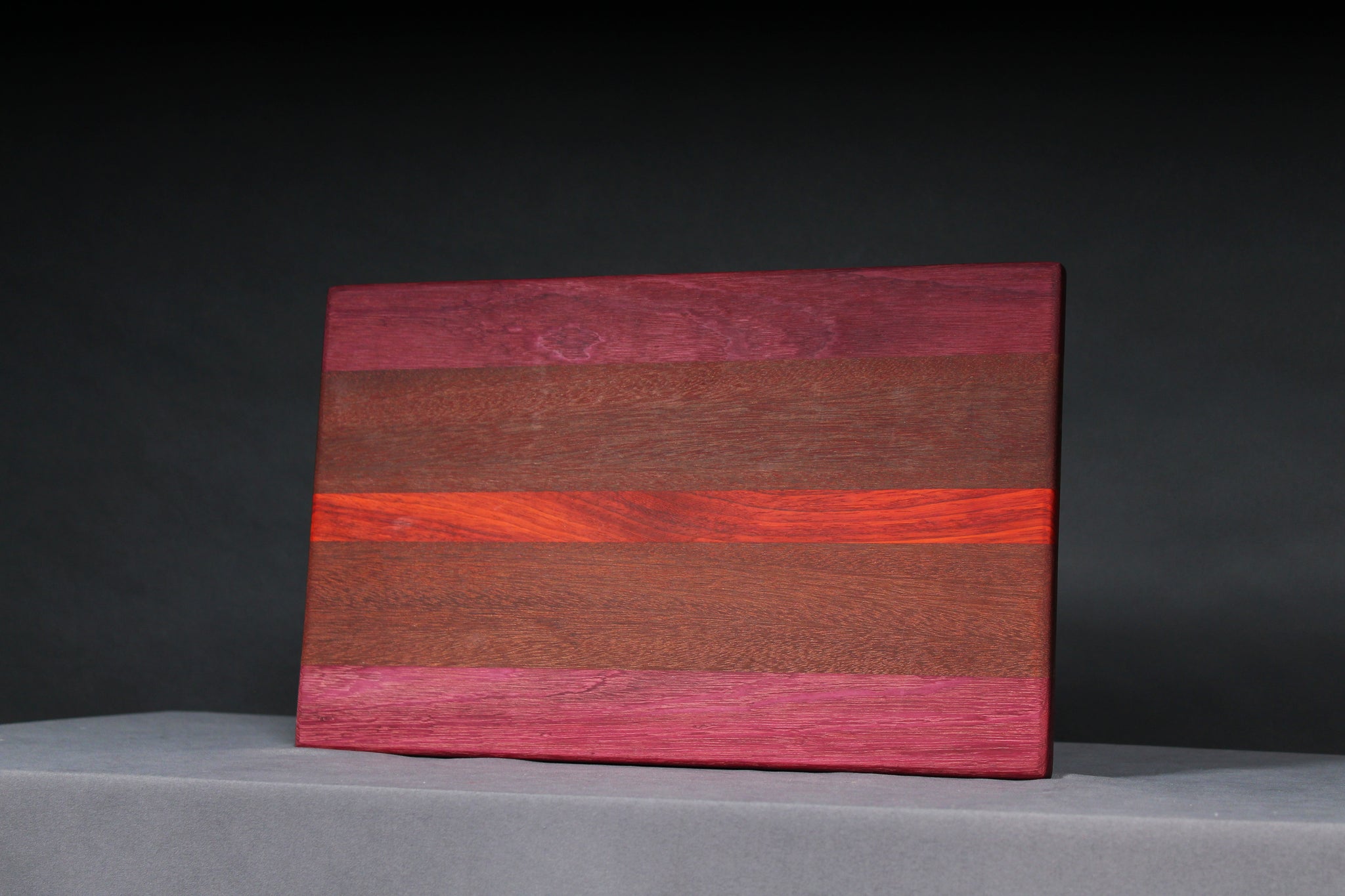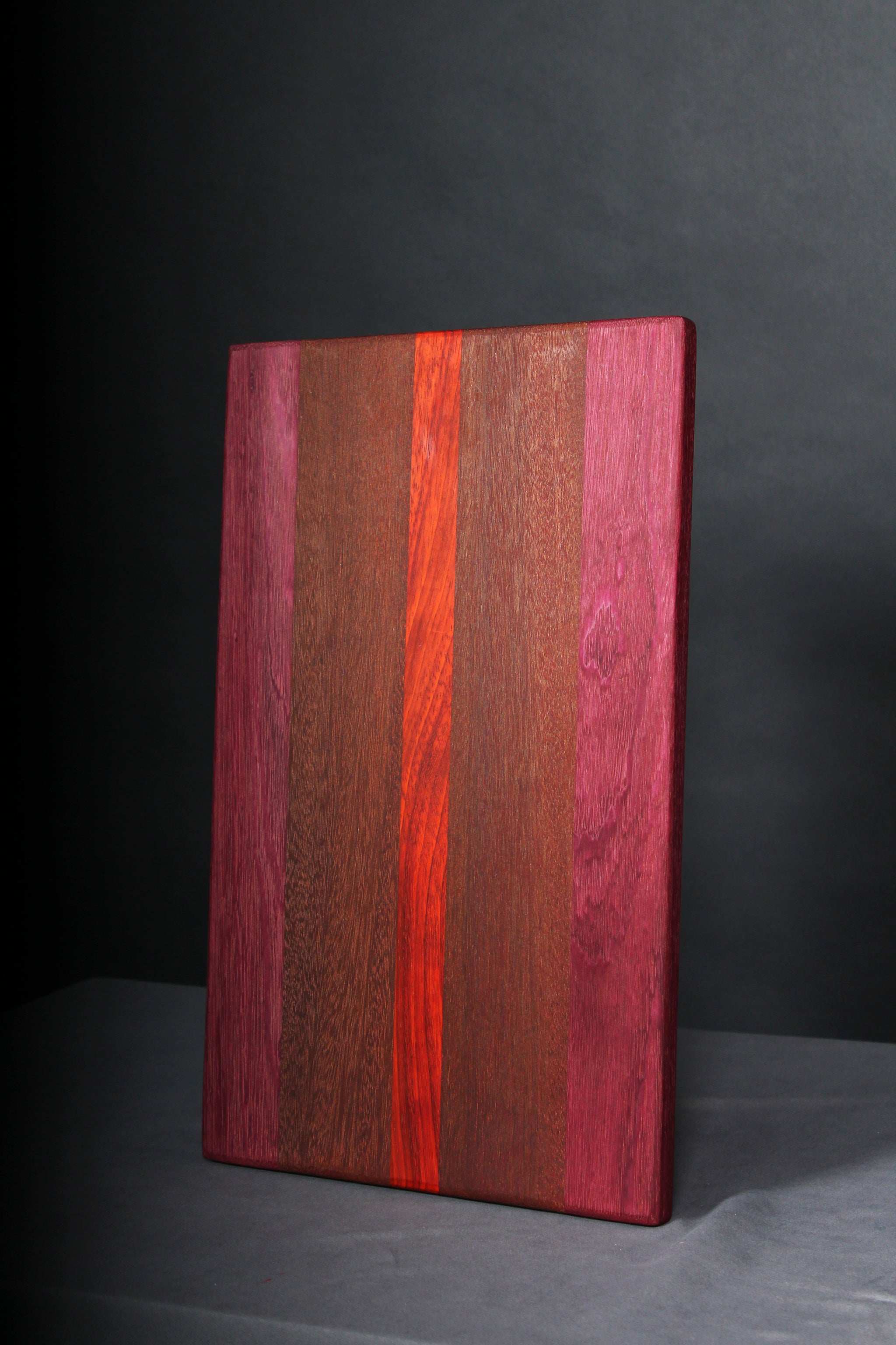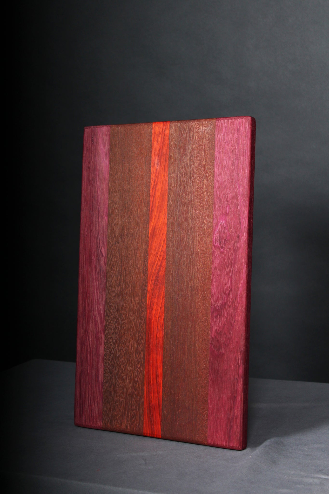 You can choose from our pre-built selection seen in the images, or design your own custom board from the following wood options: Hard maple, walnut, cherry, white oak, curly white oak, patauk, and purple heart.